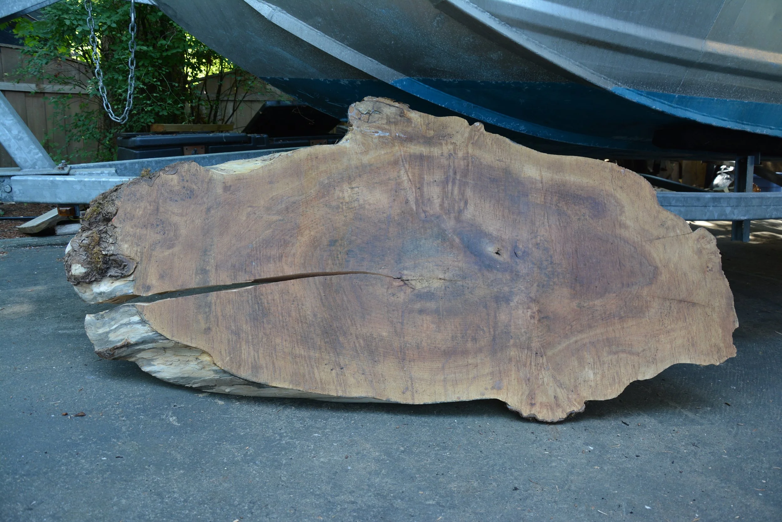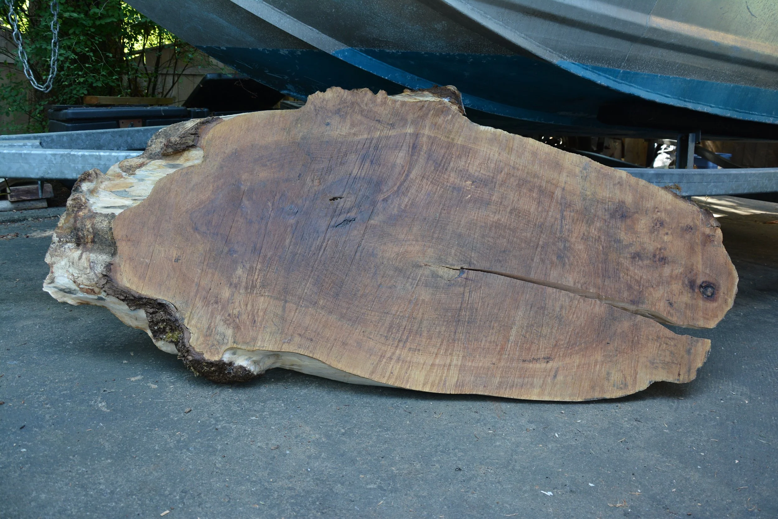 Unique milling style cut diagonally gives this slab 360 degrees of live edge.