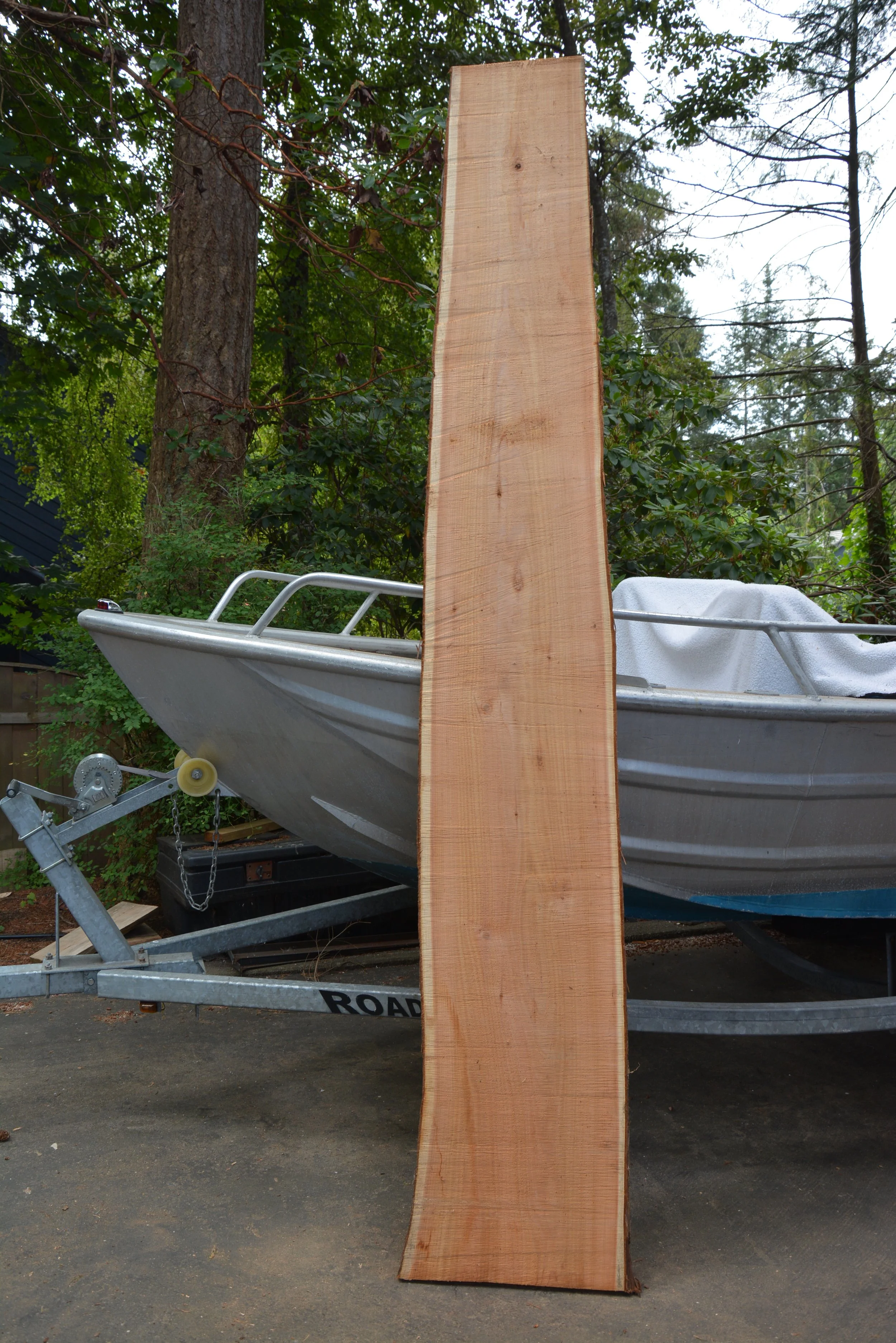 Slab is roughly 21” at widest point and 14” at narrowest.Height is 116” x 2.5” thick. Cedar Slab 5 Flattened Cedar Slab 1